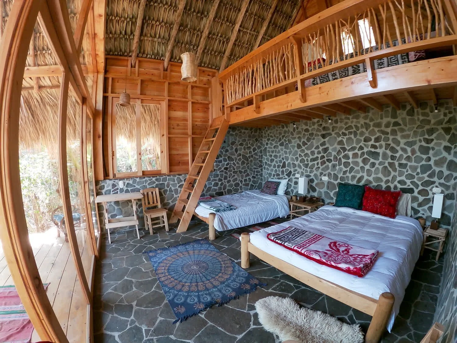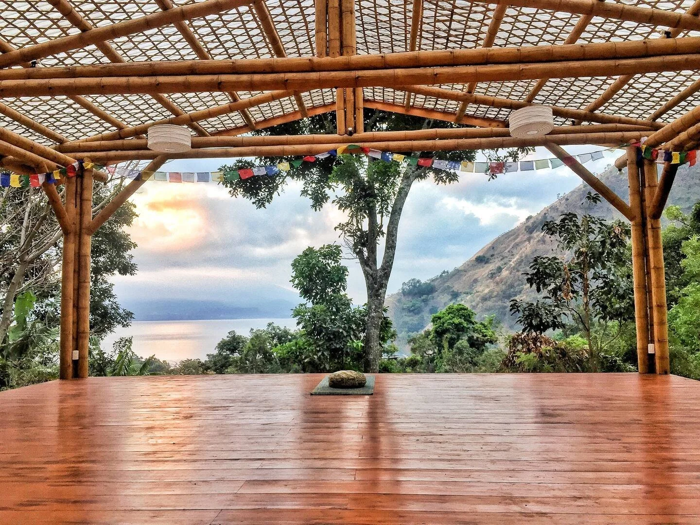Picture beginning your day in a stunning open-air yoga shala, surrounded by panoramic views of volcanoes and the tranquil lake. The vibrant landscape, dotted with colorful wildflowers and shaded by towering trees, sets the tone for a deeply enriching experience. Crafted with eco-friendly materials and a deep respect for local traditions, the retreat center embodies sustainability and reverence for nature, making it an ideal sanctuary for mind, body, and soul.